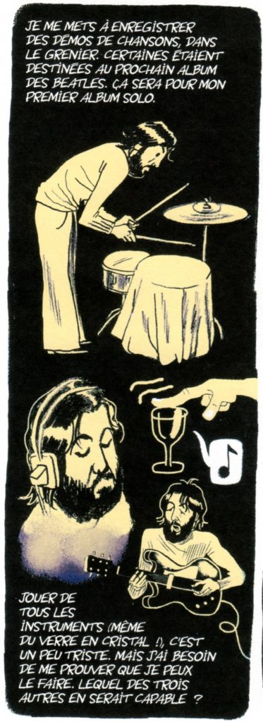Hervé Bourhis, qui est l’un des auteurs BD les plus éminents de la BD Rock, auteur, entre autres, du Petit Livre Rock, du Petit Livre Beatles, de 45 Tours Rock et de Retour à Liverpool, nous fait revivre avec une érudition discrète cette page passionnante de la vie de McCartney, à savoir les 4 ans qui ont suivi la séparation des Beatles. En insistant sur le côté humain du personnage, ballotté par les évènements mais qui va s’en sortir grâce à son génie musical, la présence de sa femme Linda, qui va lui remettre les pieds sur terre, et aussi sa forte personnalité.